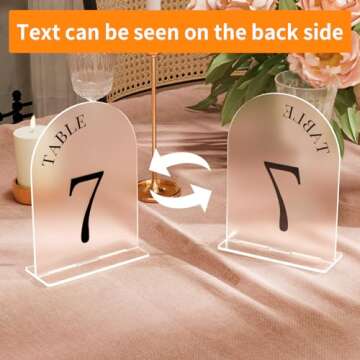 Frosted Table Numbers, 5x7 Wedding Table Numbers 1-15, Arch Acrylic Table Number Holder with Stands for Wedding Party Event