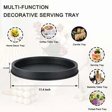 FRTIM Black Decorative Serving Round Tray, Black Metal Decor Tray for Home Decor Coffee Dining Table Centerpiece Farmhouse Kitchen Countertop(11.4 Inches