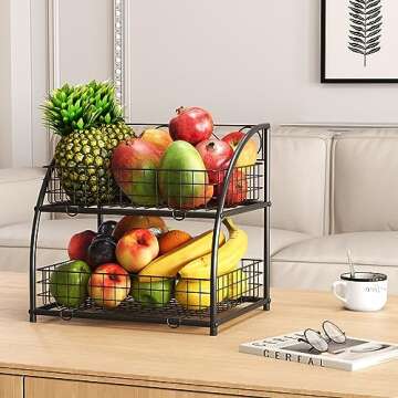 But this product is more than just a fruit holder; it's a complete countertop organizer. Use it for bread, snacks, spices, or kitchen tools to declutter your space and streamline your food storage. Perfect for any home, this basket will transform your kitchen into a charming and organized workspace.