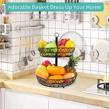 Show moreIntroducing the ultimate solution for fresh produce storage: our 2-Tier Detachable Fruit Basket. This modern and stylish fruit bowl is designed not only to keep your kitchen organized but also to enhance your home decor. Crafted with a sleek black finish, it complements any kitchen counter or dining table while providing ample space to display your favorite fruits, vegetables, snacks, or even potatoes perfectly. With each tier designed to accommodate different types of produce, you'll enjoy easy access and increased visibility, encouraging healthier eating habits in your household.