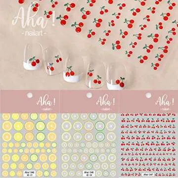 Show more Elevate your nail game this summer with our charming set of 3 pieces of summer fruit nail stickers. Crafted with whimsical designs featuring lemon, orange, grapefruit, cherry, and more, these stickers are perfect for anyone looking to add a splash of fun and color to their nails. Designed for ease of application, these self-adhesive stickers eliminate the mess of traditional nail art, making them accessible for both beginners and seasoned nails enthusiasts.