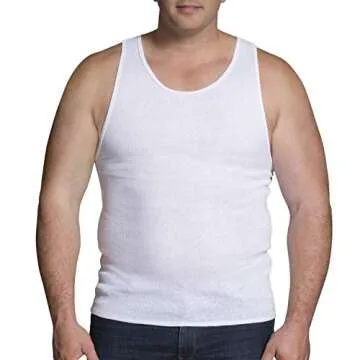 The Fruit of the Loom Big Man's Undershirts are available in sizes up to 4X, catering to a variety of body types.