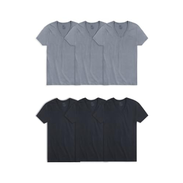 Fruit of the Loom Men's Eversoft Cotton Stay Tucked V-Neck T-Shirt - 6 Pack