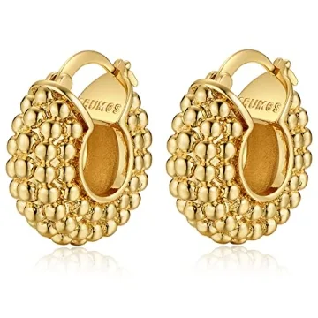 Show moreDiscover the ultimate expression of style and sophistication with these Chunky Mulberry Shape Hoop Earrings from FRUMOS. These earrings are not just accessories; they are a statement of elegance, designed to elevate any outfit. Crafted from high-quality brass material and plated with 18K real gold, they radiate luxury without breaking the bank. The noble and stylish design makes them perfect for daily wear, allowing you to shine effortlessly every day.