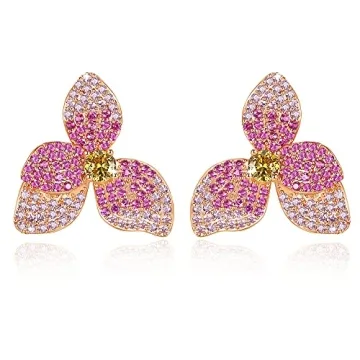 Frwiskp Pink Flower Stud Earrings, Created Pink Sapphire Earrings, cubic zircon Flora Earrings, 18K Gold Plated 925 Sterling Silver posts, Hypoallergenic Jewelry, Gifts for Women