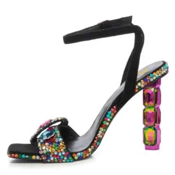 Step into elegance with the **FSJ Women Colored Diamond Heel Sandals**. These stunning shoes are designed for the modern woman who values both style and comfort. Featuring a striking square open toe and a secure ankle strap, these heels boast a high-heel height of approx. 10.5 cm (4 inches), providing you with the perfect lift for any occasion. The beautifully crafted crystal chunky block heel is adorned with colorful rhinestones, making them the ideal choice for parties, proms, or any night...