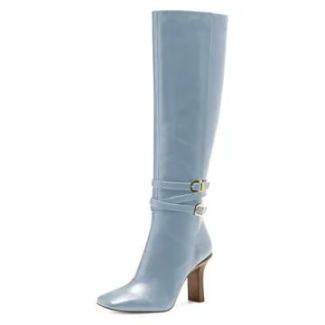 FSJ Women's Light Blue Knee High Boots - Chunky Heel & Side Zipper