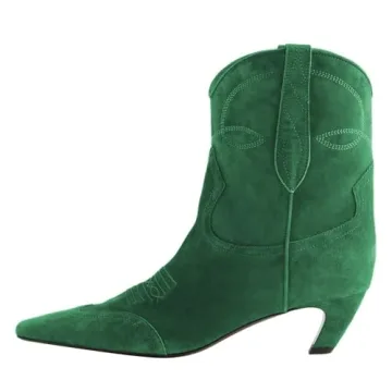 FSJ Women’s Stylish Green Suede Square Toe Low Heel Ankle Boots for All Occasions