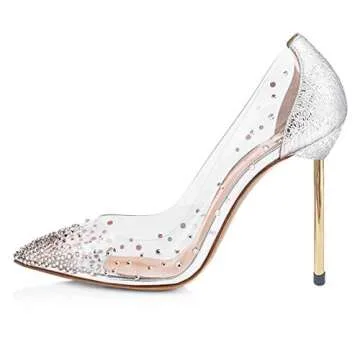 The transparent style offers a chic, modern twist on classic pumps, complemented by the pointed toe and sturdy stiletto heel, ensuring you shine bright at evening parties, proms, or weddings. The combination of quality synthetic materials and a wear-resistant rubber outsole assures durability, keeping your feet stylish and comfortable from day into night. Perfectly crafted to follow the natural curves of your feet, these pumps are a fashion statement that doesn't compromise on comfort.