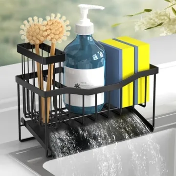 Fssvcd Maifan Sink Caddy Sponge Holder for Kitchen Sink with Brush Holder and Stainless Steel Self Drain Tray, Rustproof Kitchen Sink Organizer for Sponge, Soap Dispenser Storage Kitchen Accessories