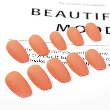 Fstrend Matte Fake Nails - 24 Pcs Full Cover Pumpkin Orange Coffin Style for Trendy Women