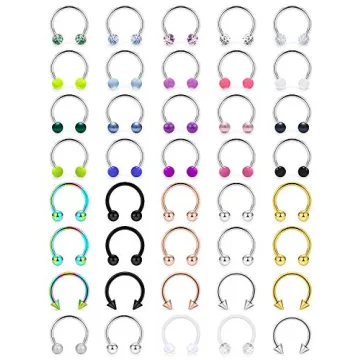 Show more Introducing the **Ftovosyo 40PCS 16G Septum Ring Set** – a comprehensive kit designed to transform your body jewelry game! Perfect for anyone looking to add a splash of color, style, or elegance to their piercings, this set offers an incredible variety. Included are 15 vibrant horseshoe barbells, 20 elegant stainless steel round ball septum rings, 2 clear bioflex horseshoe rings, and 3 uniquely styled pieces. Crafted from **high-quality 316L surgical stainless steel** and durable clear plastic, these rings blend safety and beauty, making them an ideal choice for both personal and professional wear.