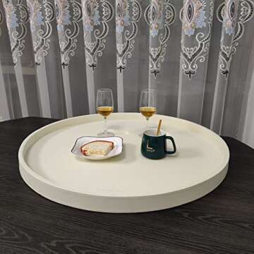Fuanrun 30 * 30 inches high-end Light Luxury Leather Round Oversized Service Tray, Ottoman Tray,Coffee Tray, Food Tray, Family Dinner, Outdoor Picnic, Party Party Essential Tray (Beige White)