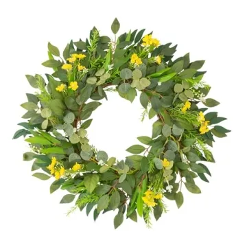 Welcome the essence of nature into your home with the beautiful Fuasozy 24 Inch Large Spring Summer Greenery Wreath. This handcrafted masterpiece goes beyond mere decoration; it serves as a vibrant symbol of life’s new beginnings and fresh opportunities. Every detail of this stunning wreath has been meticulously created, featuring an array of lifelike eucalyptus leaves harmoniously blended with other lush green varieties and accented with delicate yellow flowers. Made from high-quality...