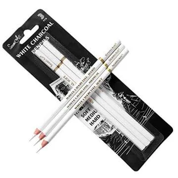 FUBAINA 3 Pcs White Sketch Charcoal Pencils -Professional Hight Quality Sketch Highlight White Charcoal Wooden Pencils for Artist Drawing, Sketching, Blending