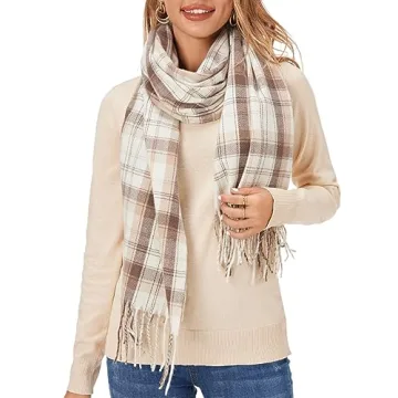 Fuinloth Women's Large Plaid Scarf - Warm Lightweight Winter Wrap in Khaki