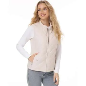 Fuinloth Women's Quilted Vest, Stand Collar Lightweight Zip Padded Gilet