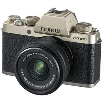 Fujifilm X-T100 Mirrorless Digital Camera w/XC15-45mmF3.5-5.6 OIS PZ Lens - Champagne Gold