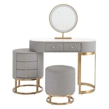 With the FUKAYI Faux Leather Makeup Vanity, you won't just be investing in a piece of furniture; you will be embracing a lifestyle of convenience, elegance, and beauty. The luxurious feel of the leather and metal combination envelops your get-ready routine in comfort and inspires confidence as you prepare for the day or a special night out. Create your dream dressing area at home and relish the joy of luxury every time you sit down at your vanity.
