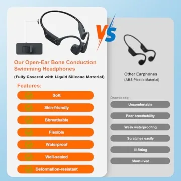 Show more Introducing the **Full-Coverage Liquid Silicone Swimming Headphones** — the ultimate companion for aquatic athletes and music lovers alike. With an impressive **IP68 waterproof rating**, you can confidently immerse these bone conduction earbuds up to **two meters underwater** without any damage. Crafted with **soft liquid silicone**, these headphones are designed for compatibility with swim caps and goggles, ensuring a comfortable fit during your swim sessions. Plus, their state-of-the-art open-ear technology allows you to enjoy music while staying aware of your surroundings – whether you're in a pool or open water.