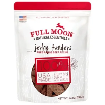 Show moreIntroducing the Full Moon All Natural Essentials Beef Jerky Tenders, where your pup's favorite treat becomes a wholesome, guilt-free indulgence! These delectable beef jerky tenders are crafted to satisfy even the pickiest eaters, renown for their rich flavor and high-quality ingredients. What sets them apart? Each tender is made from 100% all-natural ingredients, featuring human-grade beef raised on family farms, adhering to strict USDA standards fit for human consumption. Open a bag and prepare for a flurry of doggy kisses!