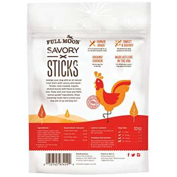 When compared to other dog treats on the market, Full Moon Organic Chicken Savory Sticks truly stand out. Many treats are packed with fillers and artificial ingredients, but our meticulous sourcing ensures that every ingredient is natural and safe for your dog’s health. While other brands might claim quality, they often fall short of USDA standards; our treats meet these standards for human consumption, providing additional peace of mind and trust for every pet owner.