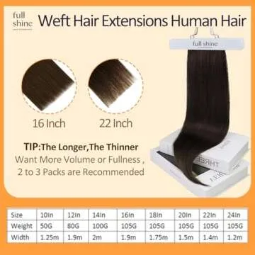 Show more Introducing the Full Shine Weft Hair Extensions, your ultimate solution to transforming your hairstyle with ease and style. Crafted from high-quality Remy human hair, these extensions come in various lengths, ranging from 10 to 24 inches, ensuring that you can find the perfect fit for your desired look. With weights varying from 50g to 105g, each pack is tailored to meet different volume needs, allowing you to achieve everything from a natural look to an extravagant style.