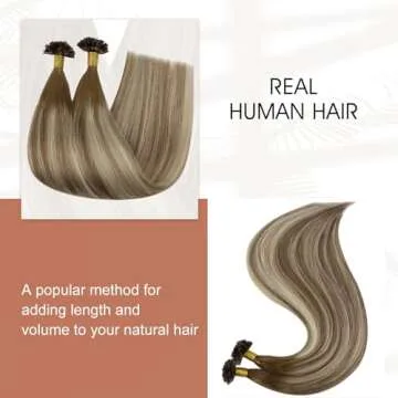 Show more Introducing the Full Shine Ktip Hair Extensions - your gateway to exquisite, beautiful hair! These premium extensions showcase a mesmerizing balayage blend of rich browns and striking blondes, available in a luxurious 22-inch length. Crafted from real human hair, they offer unmatched smoothness and a natural look that seamlessly blends with your own hair. Say goodbye to synthetic alternatives, as our extensions are both heat-resistant and durable, ensuring you can style them just like your natural locks. Perfect for enhancing your hair's volume and length, these extensions allow you the flexibility to express your unique style.