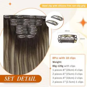 Show moreTransform your locks with the Full Shine Seamless Clip in Hair Extensions—the perfect companion for anyone looking to add instant volume and length. Made from luxurious remy human hair, these extensions feature a silky-smooth texture that feels soft to the touch and mimics the natural flow of your hair. Available in stunning balayage brown hair with light blonde highlights, these versatile extensions seamlessly blend into your own hair, elevating your style for any occasion.