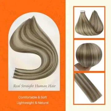 Full Shine Tape in Hair Extensions 20Inch Tape in Remy Hair Extensions Tape in Hair Color 8 Ash Brown Highlighted 60 Platinum Blonde Natural Human Hair Extensions 50G 20 Pcs for Wedding
