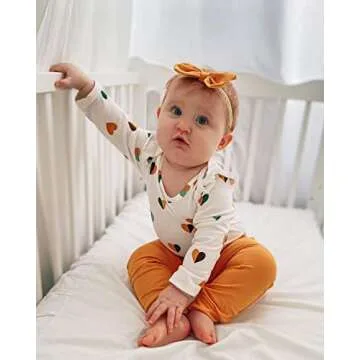 Discover the perfect blend of style and comfort with our adorable baby girl onesie and leggings set, designed specifically for your little princess. This enchanting outfit features a supersoft, naturally breathable cotton-jersey fabric, ensuring that your baby girl feels cozy and stylish all day long. The long-sleeved ruffle shape not only adds an element of elegance but also allows for easy movement during playtime.