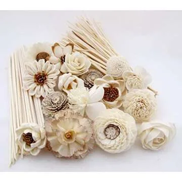 Fulllight Aroma Set, 10 Mixed Difference Flowers Diffuser Sesbania Wood with 20 Grams Reed Diffuser Sesame Wood and 20 Reed Diffuser Rattan Wood, Rod and Branch Style, for Aroma Diffuser (FL52)