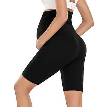 FULLSOFT Maternity Biker Shorts with Pockets Over Belly Summer 8'' High Waisted Workout Gym Active Pregnancy Short Leggings(Black,Medium)