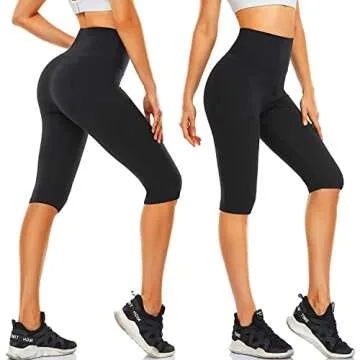 FULLSOFT Women's Knee Length Leggings-High Waisted Capri Pants Biker Shorts for Women Yoga Workout Exercise Short Casual Summer(3 Pack Capri Biack,Black,Black,Small-Medium)