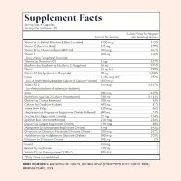 FullWell Prenatal Vitamins include essential nutrients like choline, folate, vitamin D, and a total of 26 vital nutrients that support female health during conception, pregnancy, and postpartum.