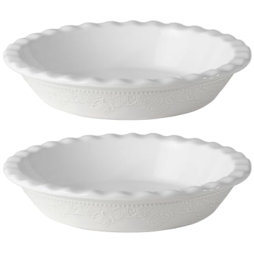 Fun Elements 9 Inch Ceramic Pie Dish - Deep Dish with Lace Emboss