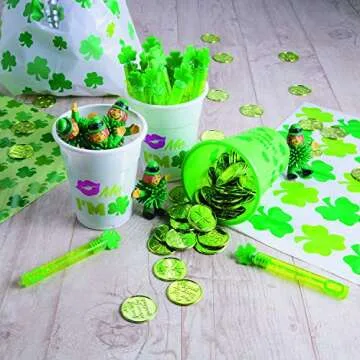 Fun Express Plastic 4-Leaf Clover Good Luck Coins for St. Patrick's Day (144 Coins) Party Favors & Decorations, Novelty Party Supplies