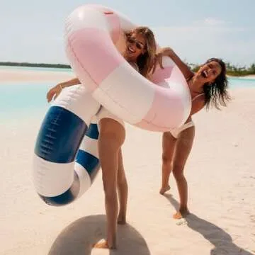 FUNBOY Giant Vintage Dusty Pink Stripe 48'' Tube Float with Integrated Cup Holder, Perfect for a Summer Pool Party, Large