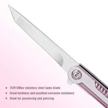 FUNBRO Pink Pocket Knife for Women - Slim EDC Knife with 7CR13Mov Steel Tanto Blade, Clip and Glass Breaker - Womens Knife for Self Defense - Cute Girl Survival Tool Pocket & Folding Knives