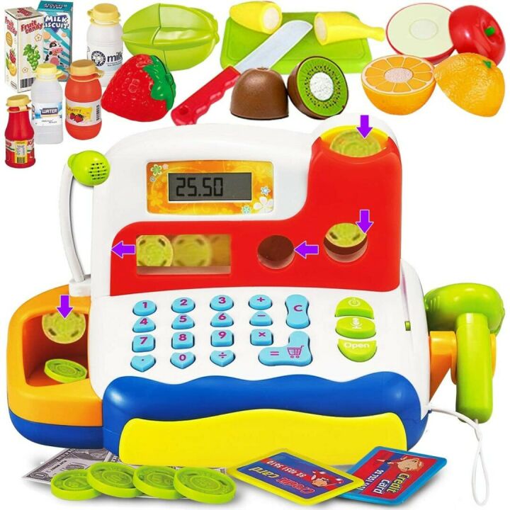 Show moreGet your kids this clever and educational cash register toy and they'll be entertained all day. ENGAGE YOUR KIDS IN GREAT PRETEND PLAY. Your children may learn how to share and become more sociable and cooperative via pretend play. Play food, shopping, and the grocery store with your kids. There are so many options with only one toy!