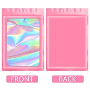 Funfery 100 pcs Pink Mylar Holographic Bags Packaging Bags,Clear Seal Resealable Smell Proof Bags Foil Pouch Bags for Food Storage and Lipgloss,Jewelry,Eyelash Packaging for Small Business(3x4.7In)