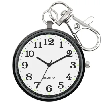 FUNGORGT Pocket Watch Ultra Thin Quartz with Bold Face & Keyring Clip