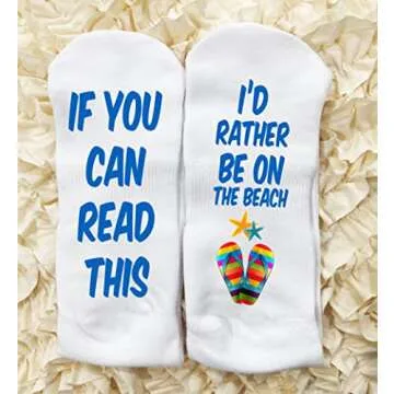 Funky Fun Socks With Sayings: Handcrafted Novelty Delights for All Ages, Versatile Sizing for Sizes 6-14, Exceptional Comfort & Durability, If You Can Read This Collection- I'd Rather be at Beach