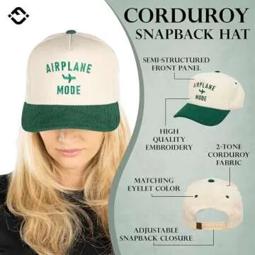 Funky Junque Two Tone Vintage Corduroy Snapback Hat - Airplane Mode - Green/Beige