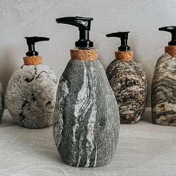 Funky Rock Designs Soap and Lotion Dispenser - Handcrafted Natural Beach Stone, Rustic Home Decor
