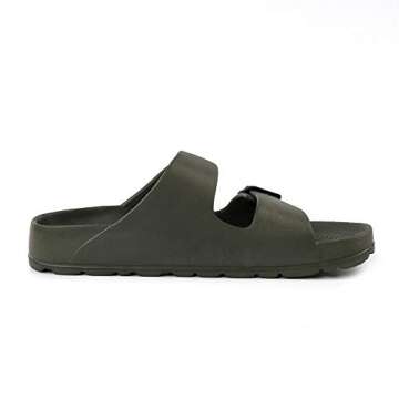 Step into summer with the FUNKYMONKEY Women's Comfort Slides. Designed with versatility and comfort in mind, these double buckle adjustable EVA flat sandals are a must-have addition to your footwear collection. Their unique design combines style with functionality, making them perfect for beach days, casual outings, or just lounging around at home. The sandals come in a trendy New Army Green shade that will complement any outfit, bringing a fresh, outdoorsy feel to your wardrobe.