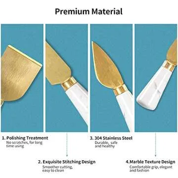 Funland 14 PCs Gold Cheese Knife Set, Marble Cheese Spreaders Knife Butter Slicer with Mini Serving Tongs Spoons and Fruit Forks for Charcuterie Board Accessories