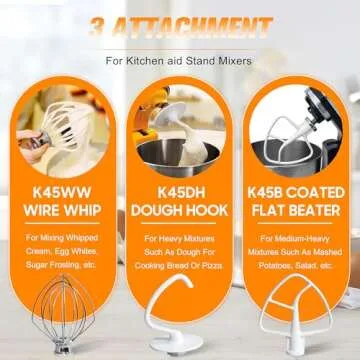 Funmit Mixers Accessories K45WW Wire Whip K45DH Dough Hook K45B Coated Flat Blade Paddle with Scraper Replacement for Kitchen Tilt-Head Aid Stand Mixer Attachments- Stainless Steel