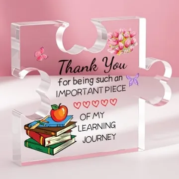 Show moreThese personalized gifts for teachers are the perfect way to express gratitude and appreciation. Designed in a charming puzzle style, this gift features warm words and lovely elements to surprise your teacher, showcasing your sincere love and thanks. From the moment you present this unique item, it becomes a heartfelt message, a testament to the impact educators have on our lives. Crafted with attention to detail, this gift stands out with clear colors and a modern design that fits seamlessly into various settings, such as classrooms or home offices.