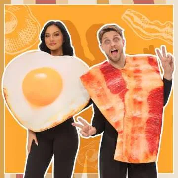 Spice up your Halloween festivities with the Funnlot Couples Halloween Costumes for Adults! This delightful and humorous costume set features a charming bacon and eggs theme, perfect for couples who want to showcase their fun-loving relationship in a lighthearted way. Each costume is sold together in one bag, allowing you and your partner to effortlessly grab the spotlight at any event. Made from high-quality polyester and polyfoam knit, these costumes are not only eye-catching but also comfortable enough...